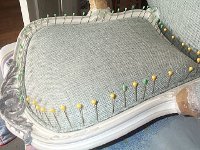 grosses épingles à tête plastique pour maintenir les toiles tout au long de la garniture, dessiner le point de fond et poser le tissu.
